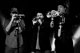 OK, so this isn’t technically JPQ news, but I just had to share the wonderful experience I had on New Years Eve.  A few years back I toured the country with Crooked Fingers, and on the first leg of the tour our opening band was Devotchka, an amazing band from Denver.  If you haven’t heard them you must follow the link and check them out.  While we were out together they asked me to sit in on a couple of tunes, and ever since then, each time they come through Seattle they ask me to play.  So I got a chance to sit in on NYE at The Showbox this year!  It was a blast playing with them and getting a chance to catch up with old friends.  Since I toured with them, they have gone on to have amazing success, scoring the soundtrack for the film “Little Miss Sunshine” and even providing the music for a Gerber Baby Food commercial and the video game Gears of War.  Thanks to Shawn, Nick, Tom and Jeanie for asking me to sit in. In the photo L-R: Cory Gray (Norfolk & Western), me, Shawn King (Devotchka).